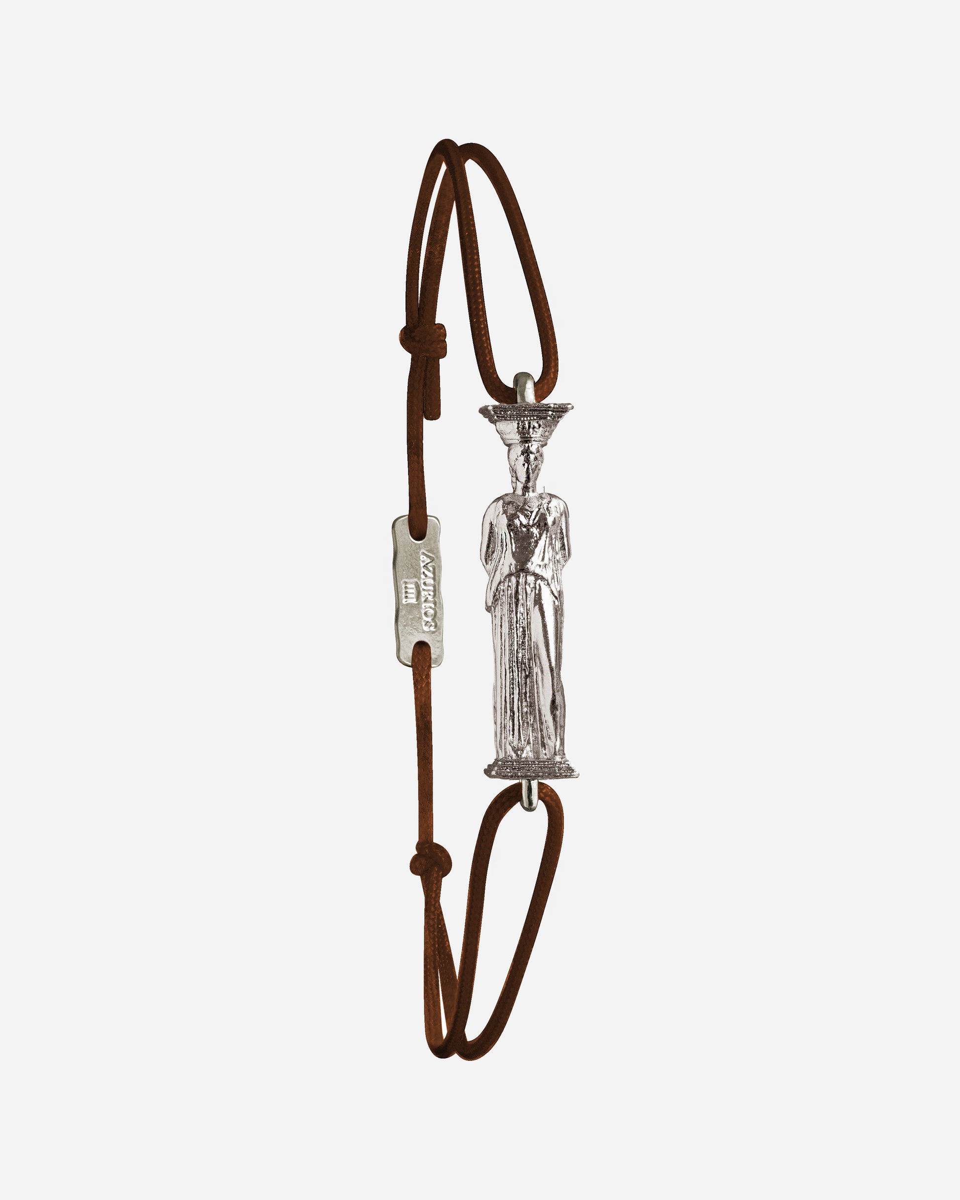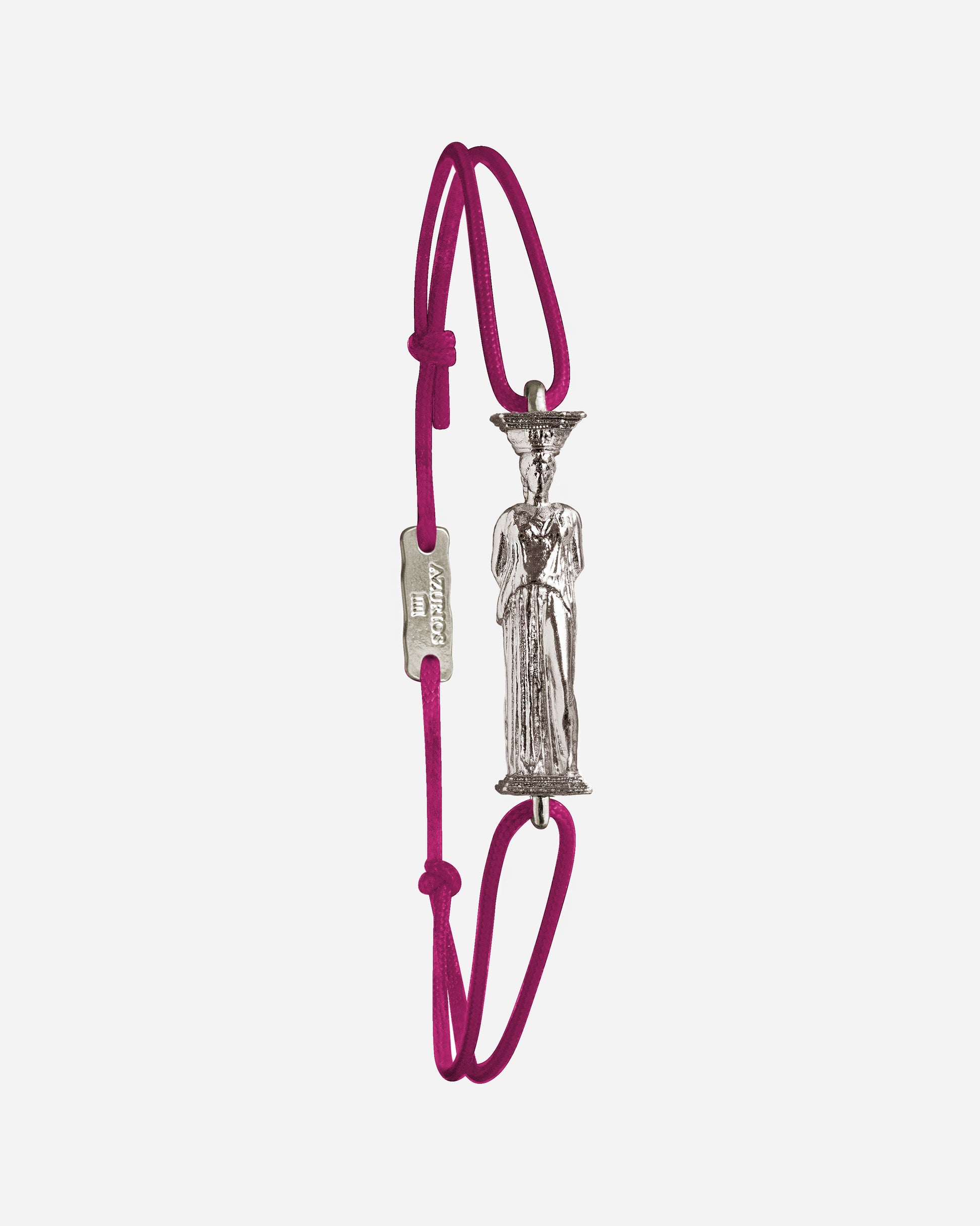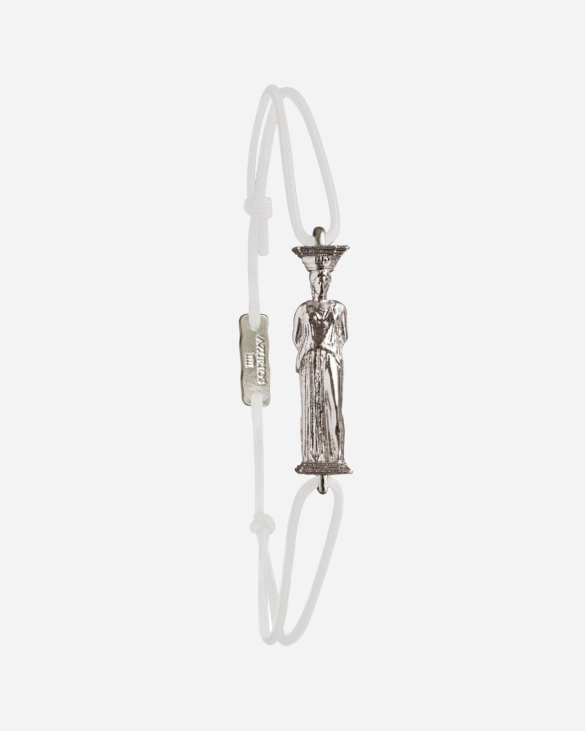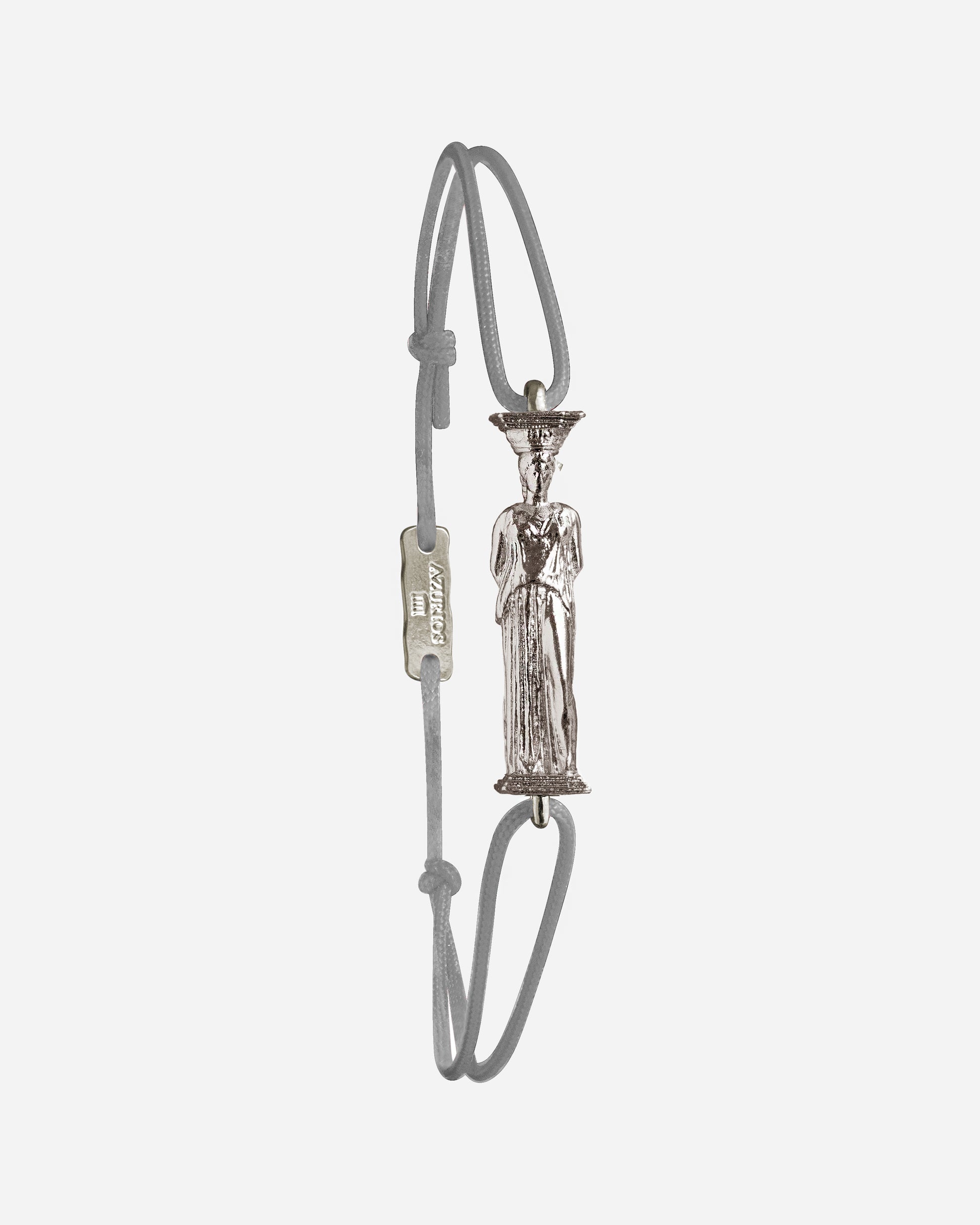 Each end is adorned with a detail inspired by Corinthian columns from the 5th century BC, adding a sculpted and crafted touch, while remaining understated. The bracelet takes on its full meaning once worn: it naturally hugs the wrist and reveals its elegance in movement.